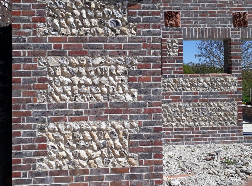 These panels of flint work are built in to a new build cottage (work in progress) in Hassocks.